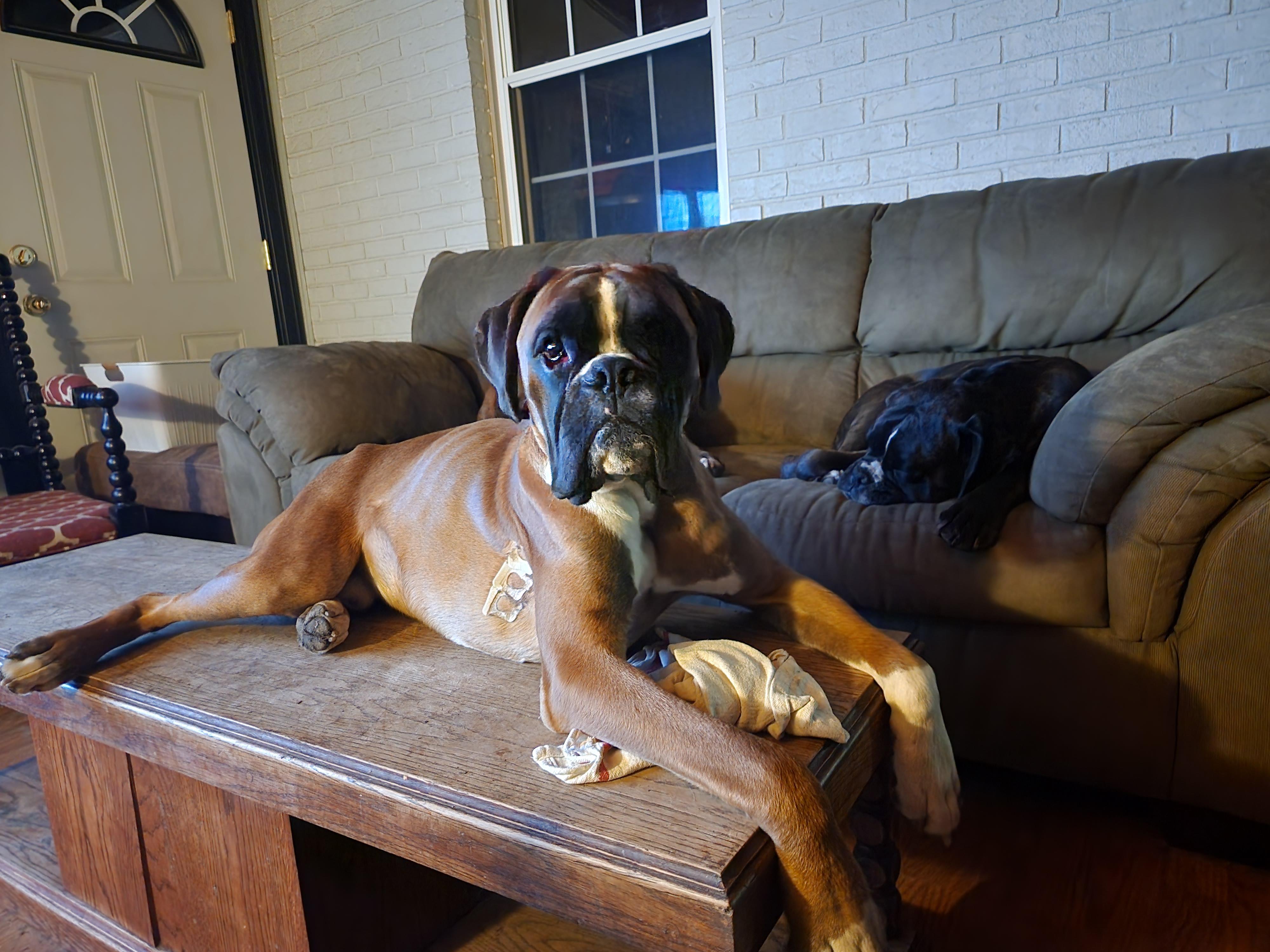 Ira is a female Boxer. Carefully selected as a great representative of her breed, Diana decided to make her part of their program. Diana has passed Good Dog’s screening process, which involved a review of their breeding practices, environment, and the mental and physical health of their dogs.