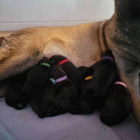 Our puppies include black sable, mahogany, fawn sable, and black. Colors will vary depending on the parent dogs.
