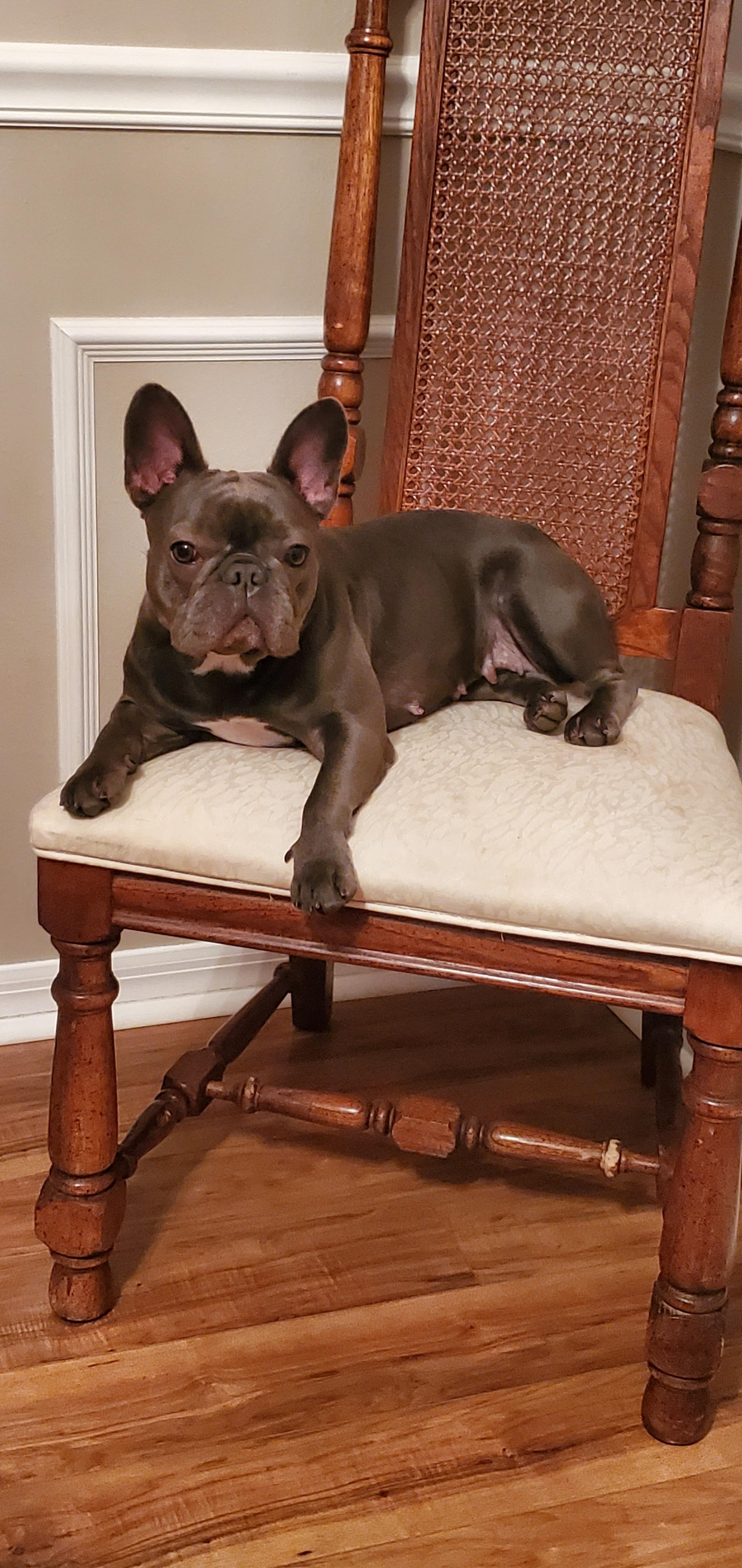 Princess is a female French Bulldog. Carefully selected as a great representative of her breed, Robyn decided to make her part of their program. Robyn has passed Good Dog’s screening process, which involved a review of their breeding practices, environment, and the mental and physical health of their dogs.