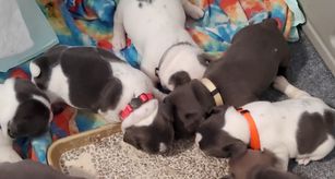 Our puppies include black and white and blue. Colors will vary depending on the parent dogs.