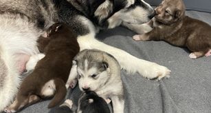 Growing up my mom bred and raised labs. I helped with it for many years and loved it. My mom also had an Alaskan Malamute that brought me into loving the breed. I decided to get my own in 2020 with the intentions of starting a small breeding program with her. We had a litter of Malamutes in September 2023 and December 2024.