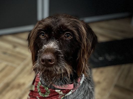 Lucy is a female Wirehaired Pointing Griffon. Carefully selected as a great representative of her breed, Lindsay decided to make her part of their program. Lindsay has passed Good Dog’s screening process, which involved a review of their breeding practices, environment, and the mental and physical health of their dogs.