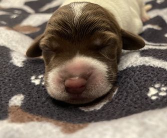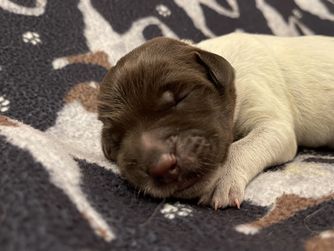 “Deposits are due once puppies have had 1st vet visit with tails/dewclaws done.”