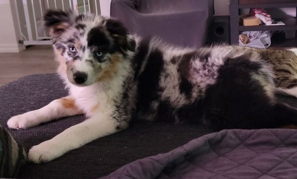 Our puppies include red merle, blue merle, black tri-color, and red tri-color. Colors will vary depending on the parent dogs.