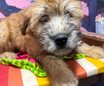 Felicias Swheaties reports to performing the health tests below on their breeding dogs. Ask your breeder about the tests performed on the parents of your litter. Learn more about health testing for Soft Coated Wheaten Terriers.