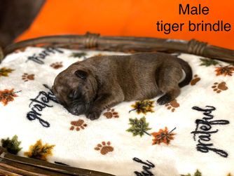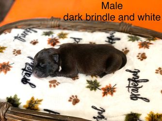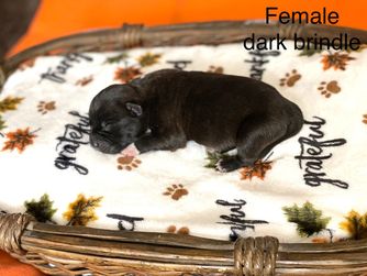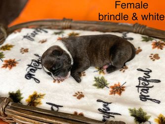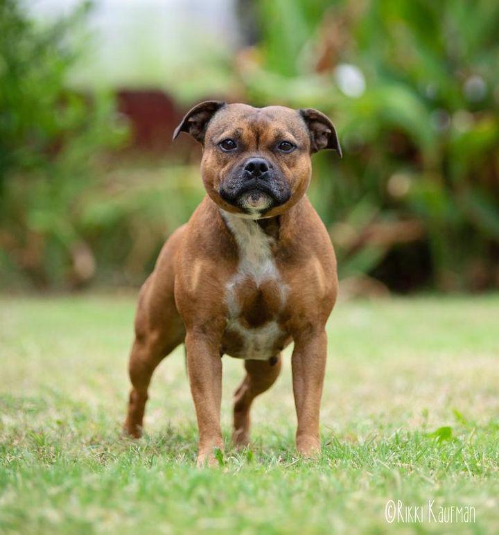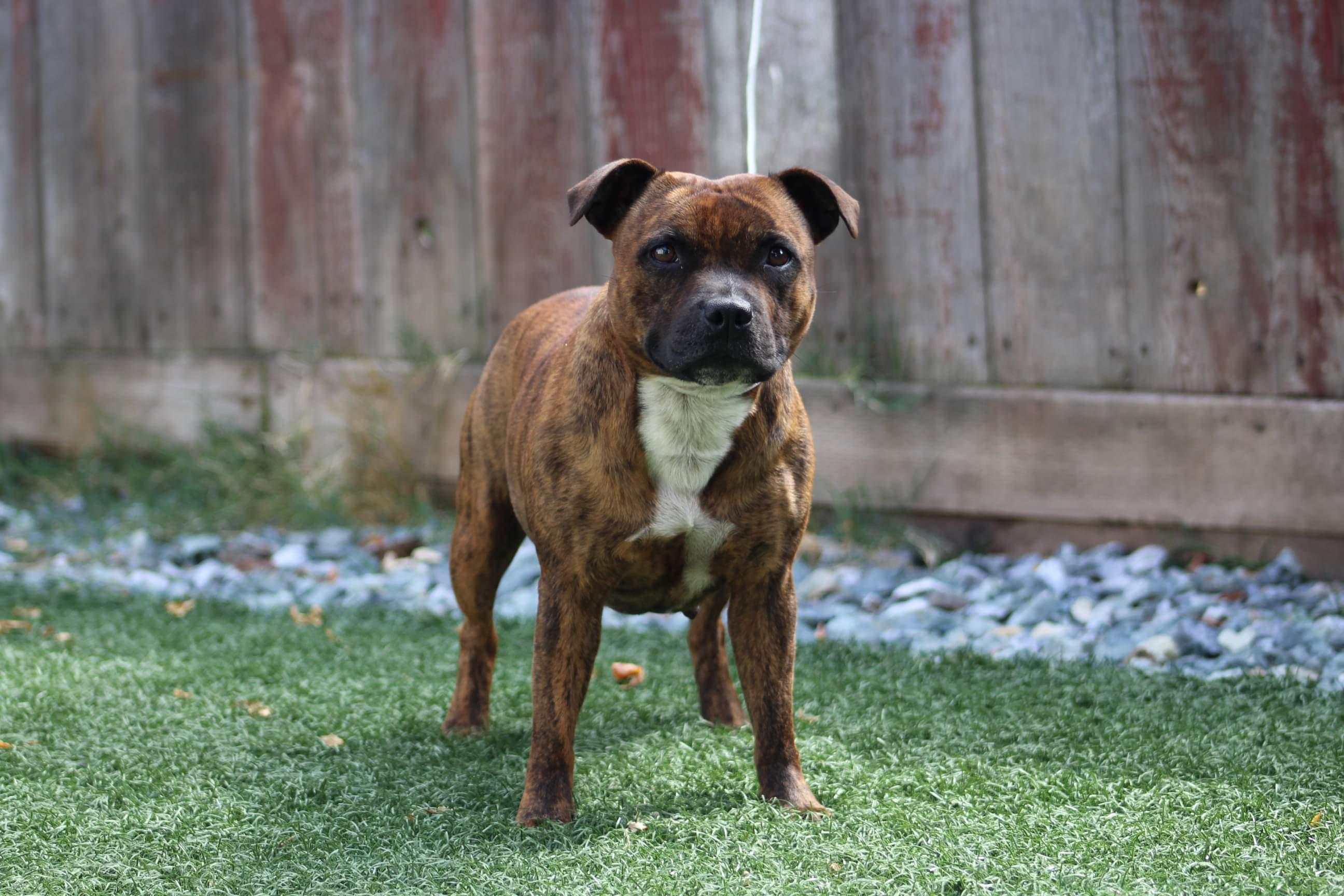 Day is a female Staffordshire Bull Terrier. Carefully selected as a great representative of her breed, Feliza decided to make her part of their program. Feliza has passed Good Dog’s screening process, which involved a review of their breeding practices, environment, and the mental and physical health of their dogs.