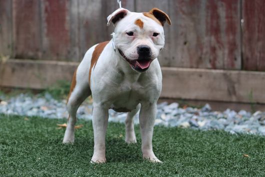 Zep is a male Staffordshire Bull Terrier. Carefully selected as a great representative of his breed, Feliza decided to make him part of their program. Feliza has passed Good Dog’s screening process, which involved a review of their breeding practices, environment, and the mental and physical health of their dogs.