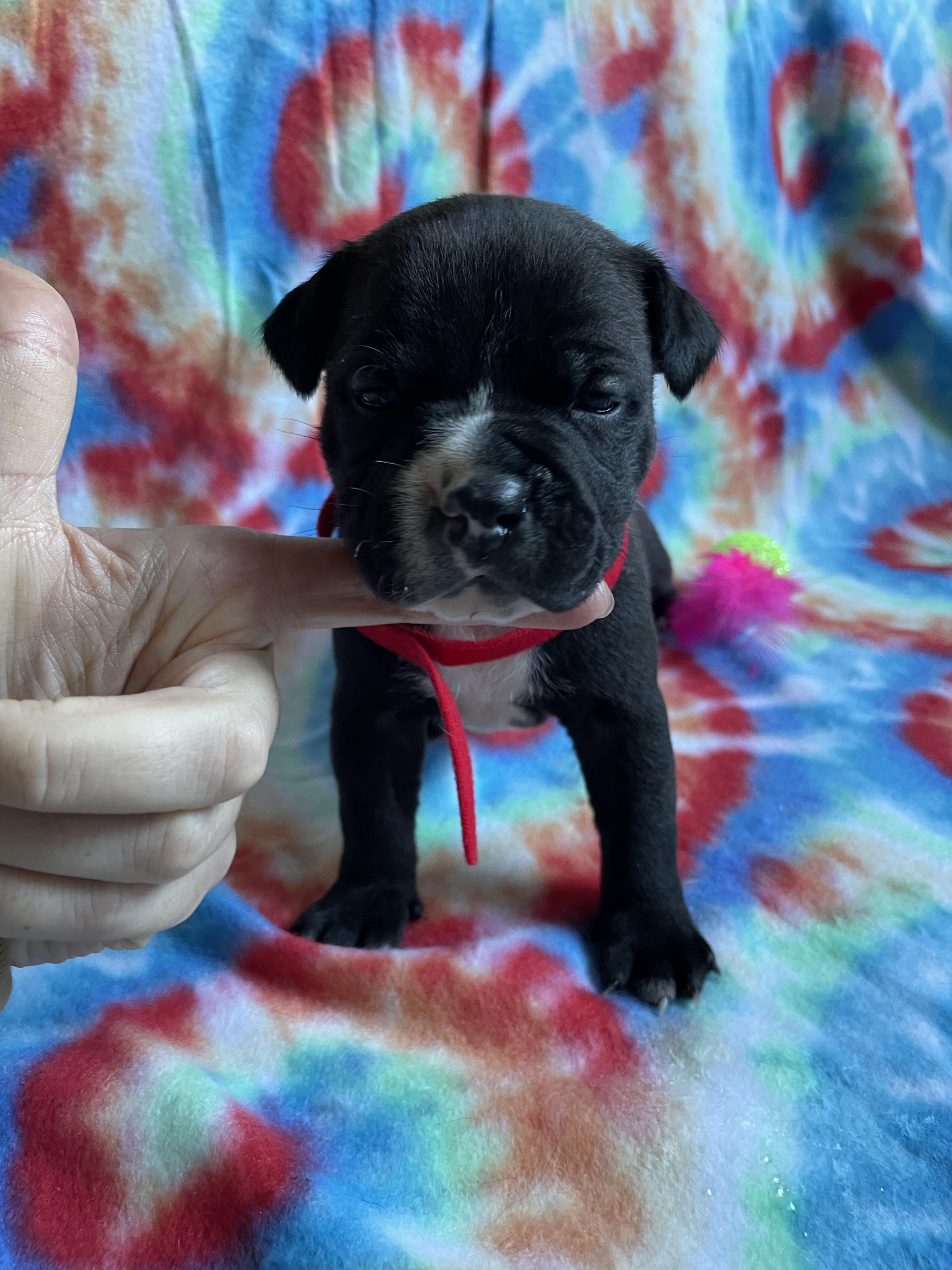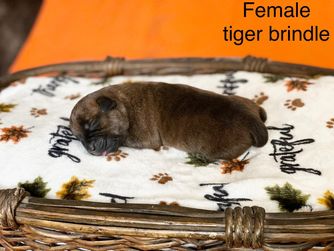 Francis is a female Staffordshire Bull Terrier. Carefully selected as a great representative of her breed, Feliza decided to make her part of their program. Feliza has passed Good Dog’s screening process, which involved a review of their breeding practices, environment, and the mental and physical health of their dogs.