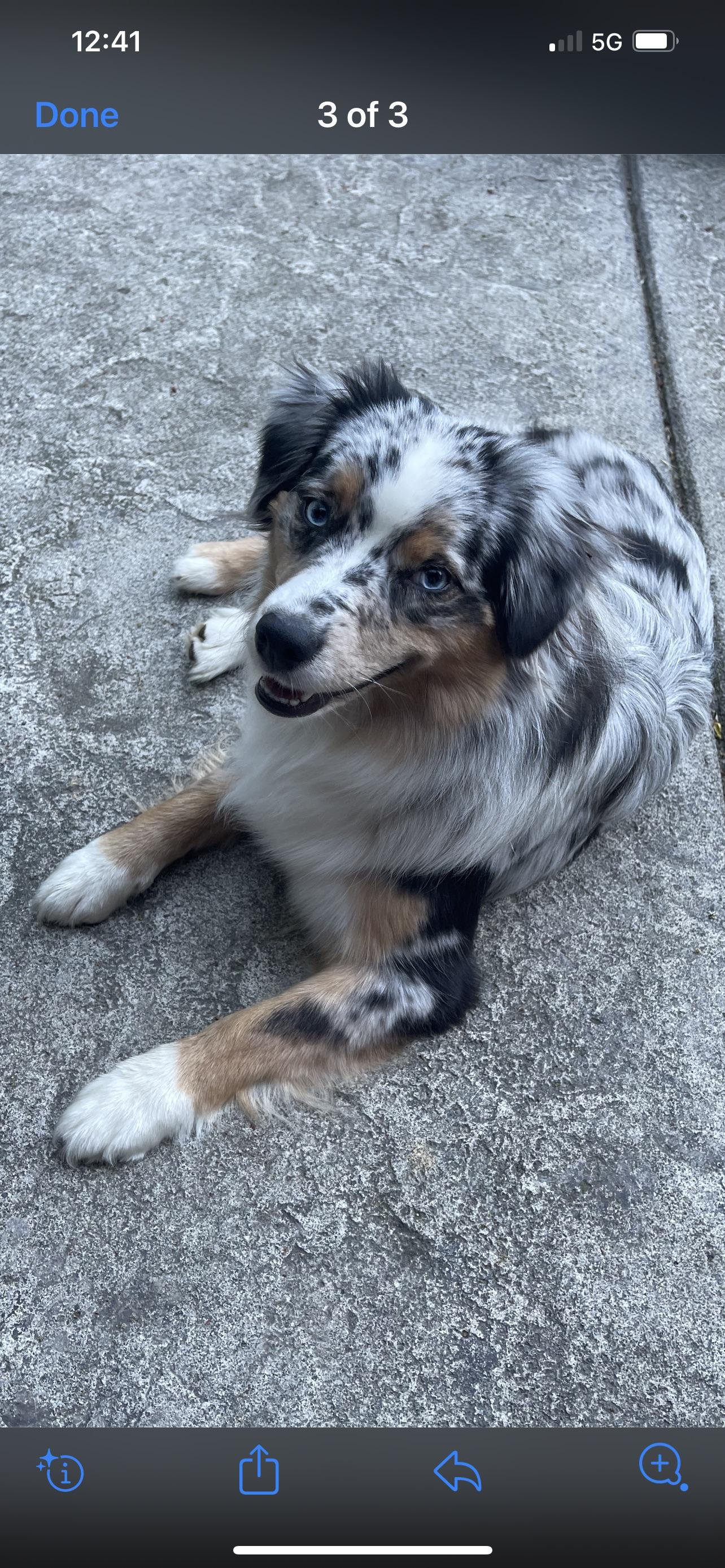 Winston is a male Miniature American Shepherd. Carefully selected as a great representative of his breed, Kim decided to make him part of their program. Kim has passed Good Dog’s screening process, which involved a review of their breeding practices, environment, and the mental and physical health of their dogs.