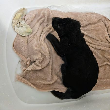 Bath time really isn't all that stressful for these pups. I see lots of water fun in their futures!