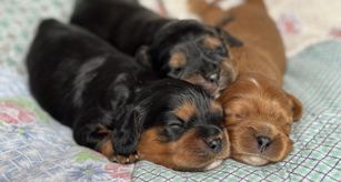 Our puppies include ruby, tri-color, and black and tan. Colors will vary depending on the parent dogs.