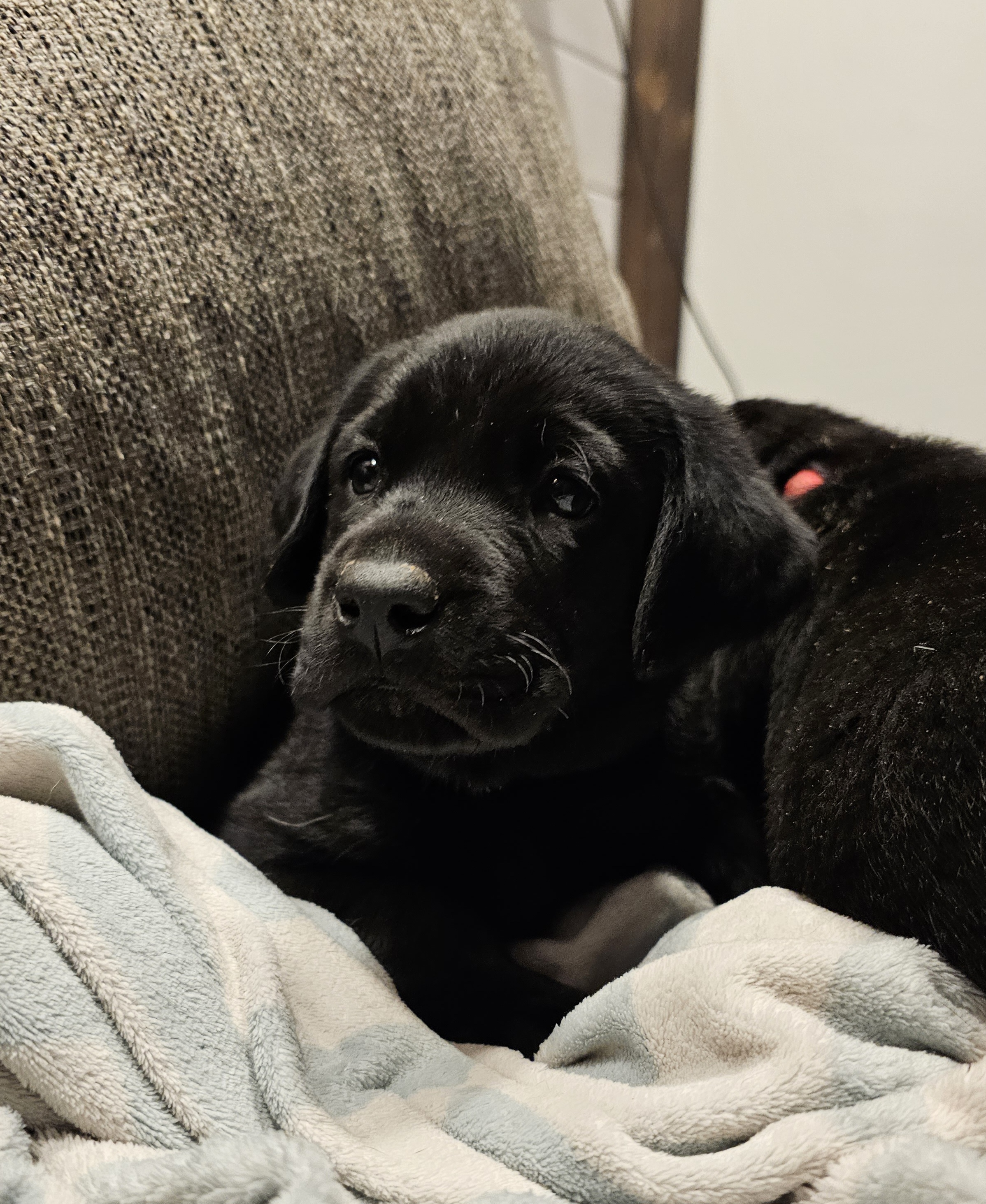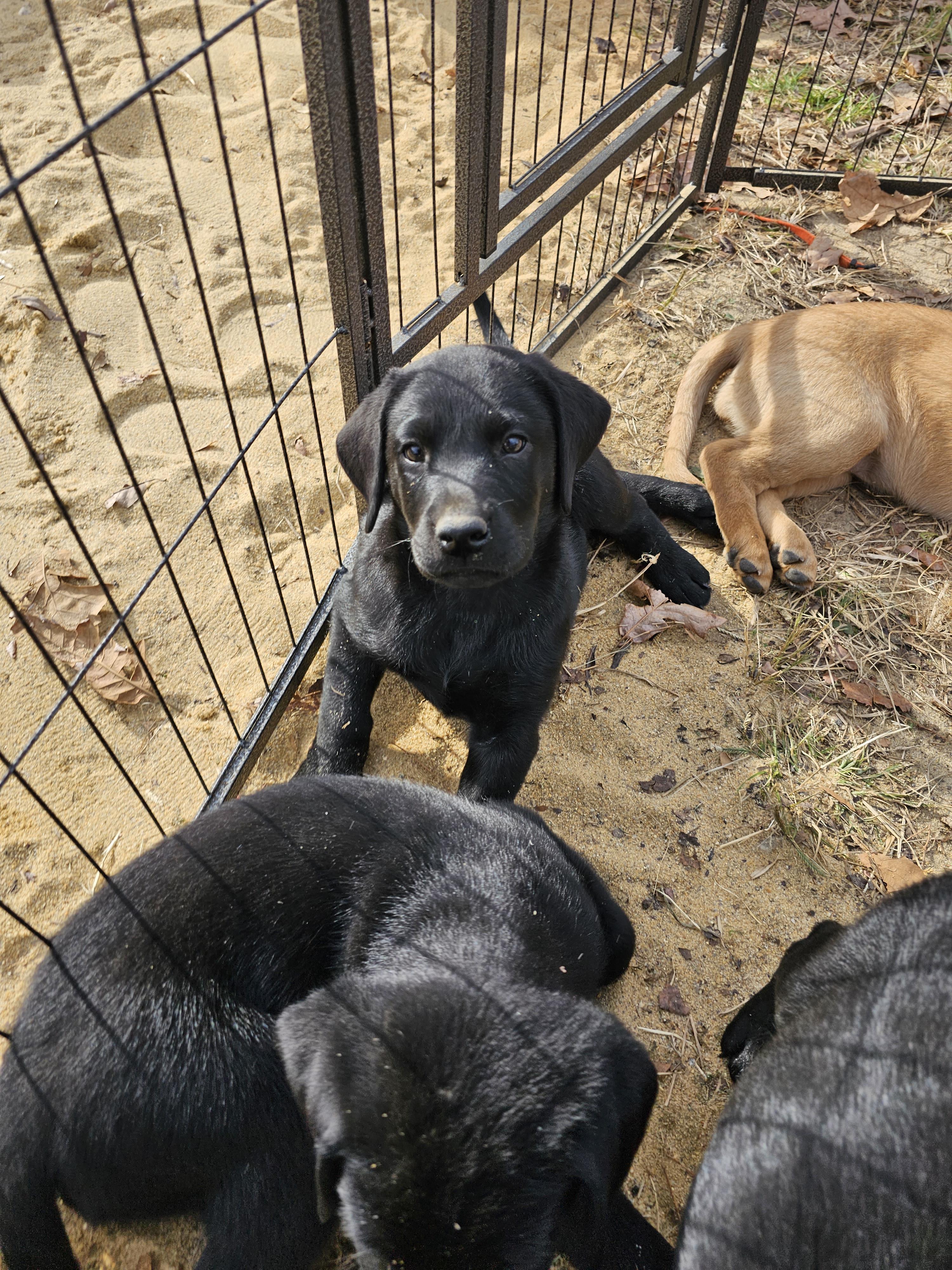 Our Labrador Retriever puppies include black, chocolate, and yellow. Dilute Retriever puppies are charcoal. Colors will vary depending on the parent dogs.