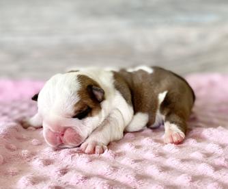 Our puppies include red, fawn, white, fawn and white, fawn brindle and white, red brindle and white, red brindle, and red and white. Colors will vary depending on the parent dogs.