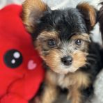Our Yorkshire Terrier puppies are black and gold. Chihuahua puppies include chocolate, red, black and white, and blue merle. Poodle puppies are apricot. Colors will vary depending on the parent dogs.