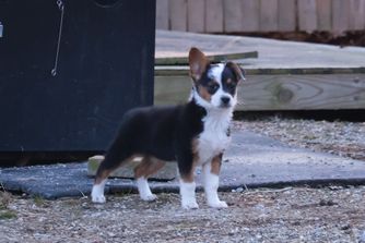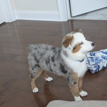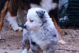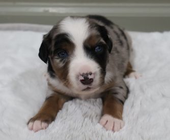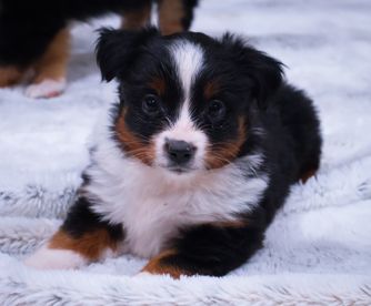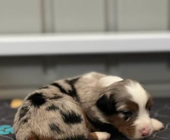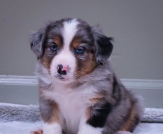 Our Toy Australian Shepherd puppies include black tri, blue merle, red merle, and red tri. Miniature American Shepherd puppies include red tri-color, black tri, red merle, and blue merle. Colors will vary depending on the parent dogs.