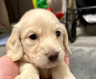 Our puppies include cream, chocolate and tan, black and tan, and dapple. Colors will vary depending on the parent dogs.