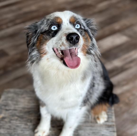 Pearl is a female Australian Shepherd. Carefully selected as a great representative of her breed, Shannon decided to make her part of their program. Shannon has passed Good Dog’s screening process, which involved a review of their breeding practices, environment, and the mental and physical health of their dogs.