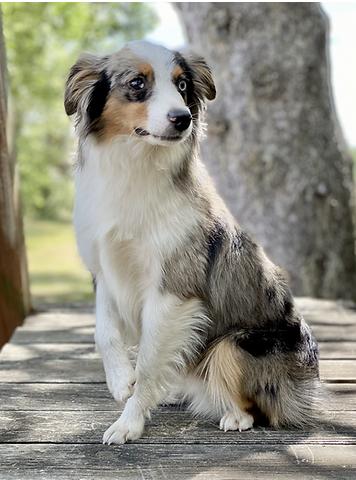 Rut is a male Miniature Australian Shepherd. Carefully selected as a great representative of his breed, Shannon decided to make him part of their program. Shannon has passed Good Dog’s screening process, which involved a review of their breeding practices, environment, and the mental and physical health of their dogs.