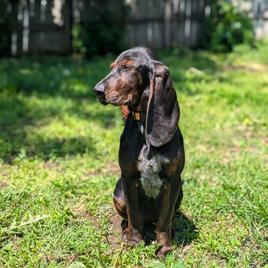 Dex is a male Colombian Fino Hound. Carefully selected as a great representative of his breed, René & Ashley decided to make him part of their program. René & Ashley has passed Good Dog’s screening process, which involved a review of their breeding practices, environment, and the mental and physical health of their dogs.