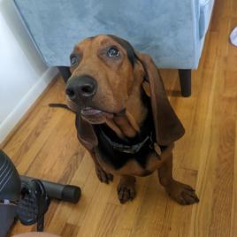 Vol is a male Colombian Fino Hound. Carefully selected as a great representative of his breed, René & Ashley decided to make him part of their program. René & Ashley has passed Good Dog’s screening process, which involved a review of their breeding practices, environment, and the mental and physical health of their dogs.