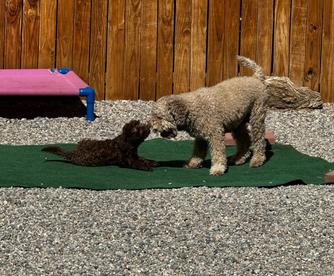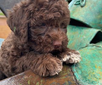 “My full time job is to raise you the best puppy of your life ..or 2 :) I spend all day and night with my dogs. We share life and love and adventures daily. My dogs are my family not exploited and neglected. COME ON PEOPLE !! You must ask questions, do a FaceTime call, don’t ignore red flags .. dogs are too important to buy a fearful sick Lagotti . Look at the Lagotto Club of America Breeder Referral list. If the breeder you have been speaking with is not listed.. ASK WHY!! Please don’t ignore warning signs because you are in a hurry . There are PLENTY of well bred Lagotti in America. My puppies are a pleasure to house train and transition. They have been handled and groomed and trained for weeks when you get them. Mine sleep all night in the crate, walk on leash, perfect to wash/nails and trim. My older dogs are more money because they are age appropriately better trained , and easy to transition into your home. My 10 week old have a great start but you have a lot of work to do …Lagotti pups need a ton of socialization and outings …new people, dogs, experiences and places ☺️ I usually have 1 year fully trained dogs to share as well which are 7000.00 and up depending of personality traits and color. The 500.00 goes toward the purchase price after we have gotten to know each other and feel comfortable taking that next step.”