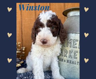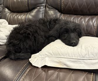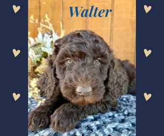 Whiskey is a chocolate phantom standard poodle. He has been fully genetic tested by embark and is clear! He has a calm loving disposition and is the stud to all our pups. He sleeps with my son every night and will do anything for a treat and some snuggles!