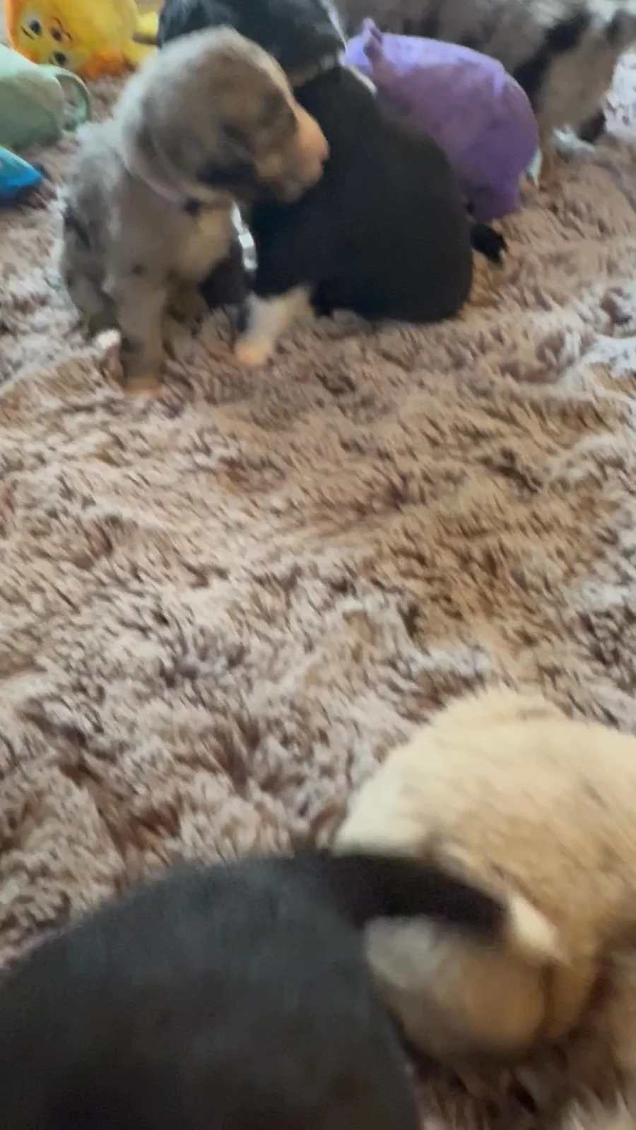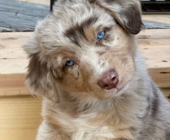 Our puppies include black, red merle, blue merle, and red. Colors will vary depending on the parent dogs.
