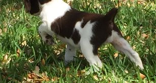 Our puppies include white and orange, white and liver, orange and white, and liver and white. Colors will vary depending on the parent dogs.