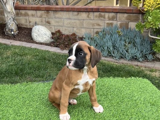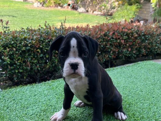 Boy 1 is a male Boxer. Carefully selected as a great representative of his breed, Abe decided to make him part of their program. Abe has passed Good Dog’s screening process, which involved a review of their breeding practices, environment, and the mental and physical health of their dogs.