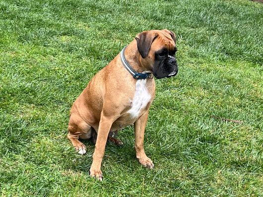 Milo is a male Boxer. Carefully selected as a great representative of his breed, Abe decided to make him part of their program. Abe has passed Good Dog’s screening process, which involved a review of their breeding practices, environment, and the mental and physical health of their dogs.