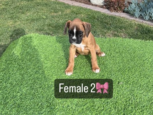 Female 1 is a female Boxer. Carefully selected as a great representative of her breed, Abe decided to make her part of their program. Abe has passed Good Dog’s screening process, which involved a review of their breeding practices, environment, and the mental and physical health of their dogs.