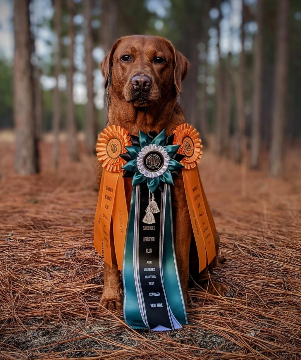 Aries loves fetching Duck, Pheasant, and antlers. She performs in AKC HT, HRC, UKC ESDS, NASHDA, and Dock Jumping with NADD & DDWW. She has a very sweet, loyal-loving temperament with a high prey drive but and manageable on/off switch from the field to home. She is very eager and wants to please her people, loves to learn, and has great focus. She attended her first UKC Elite Shed Dog Series and NASHDA Hunt Test at 10 months and earned her first passes after only having a week and a half crash course in shed hunt training. Aries earned her AKC JH June 24, 2018 just after gundog training and we then moved along and received her SHR with HRC and currently training for Seniors. Aries also attends AKC NADD events with a distance score of 19.2’ and Air Retrieve of 15'. She earned her AKC S.T.A.R. Puppy at 16 weeks old.