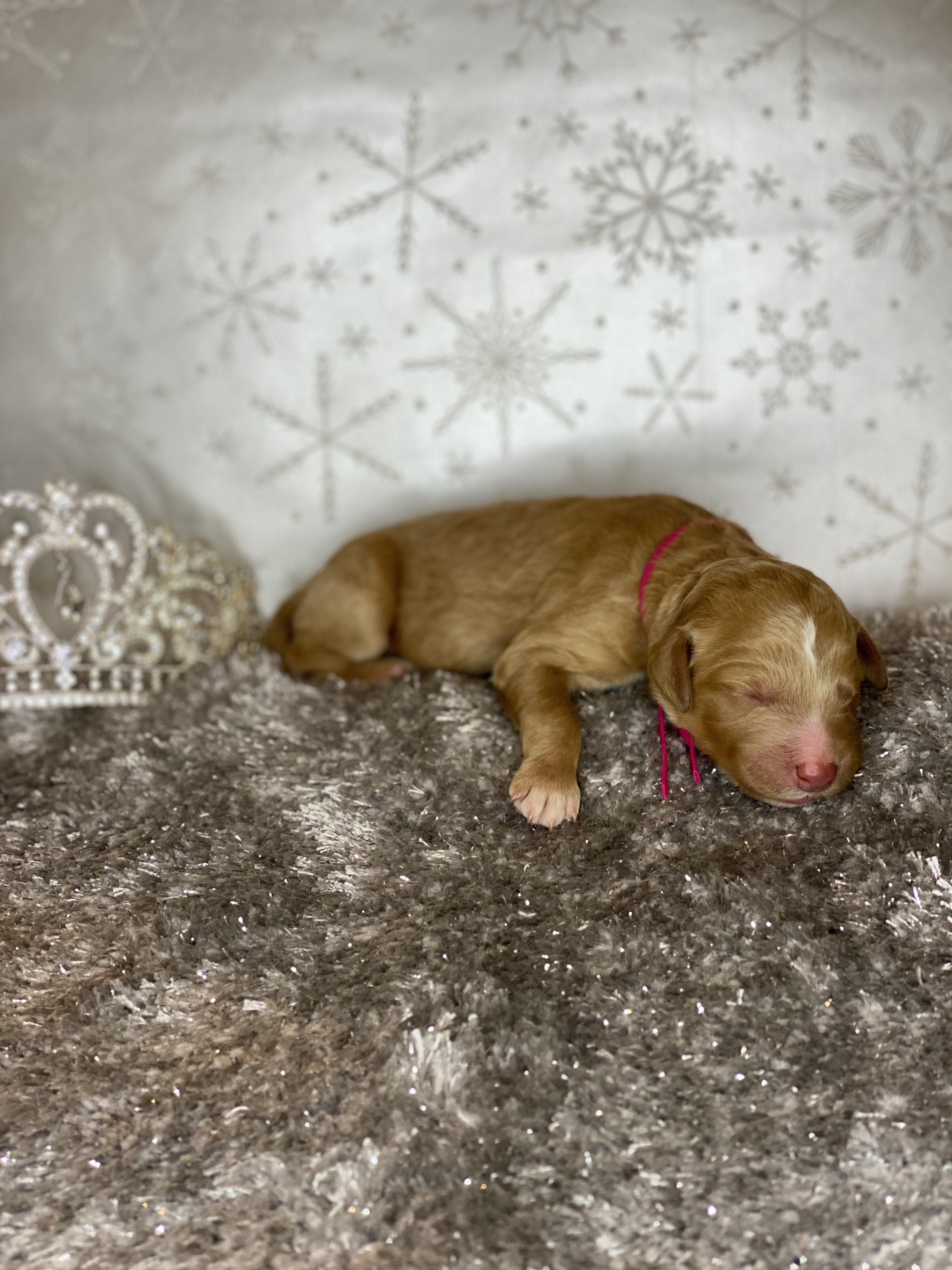 Ruby is a female Goldendoodle. Carefully selected as a great representative of her breed, Kayla decided to make her part of their program. Kayla has passed Good Dog’s screening process, which involved a review of their breeding practices, environment, and the mental and physical health of their dogs.