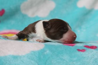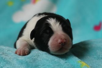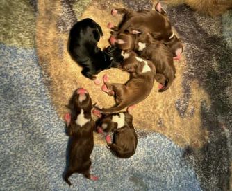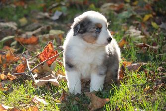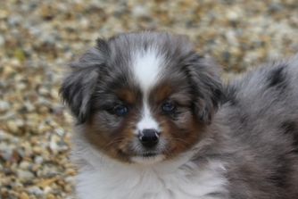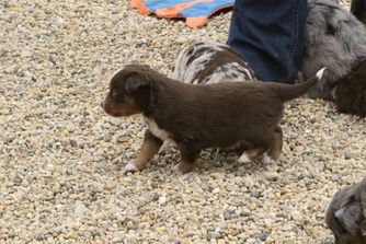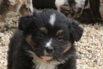 Border Collie puppies include tri-color, blue merle, red merle, black, red, and seal. Miniature American Shepherd puppies include red tri-color, black tri, red merle, and blue merle. Colors will vary depending on the parent dogs.