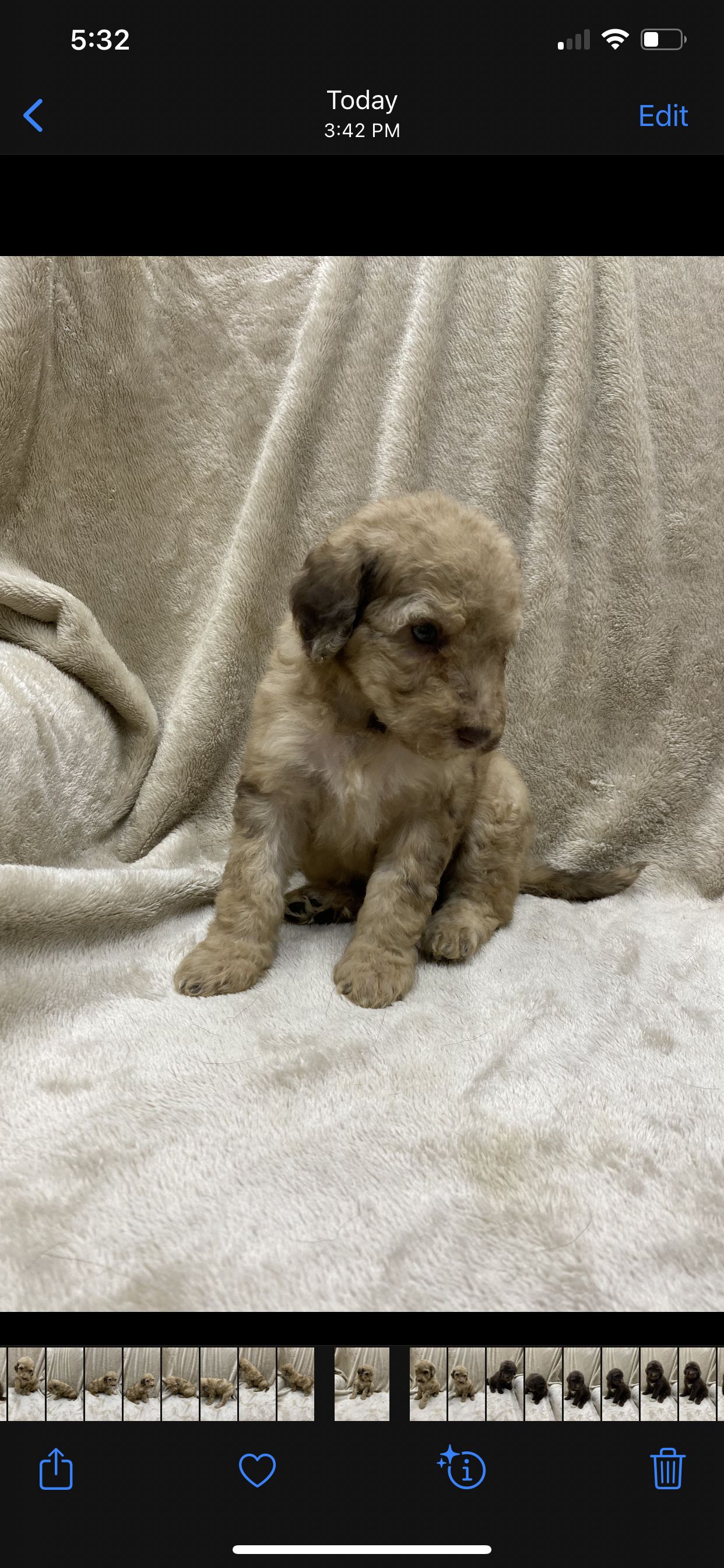 “Mom and dad are both genetically and health tested and clear by Embark. Our litters have far exceeded our expectations, both parents are chosen for their compatibility regarding health, intelligence, personalities, temperament and color, the whole package, and are outstanding in each regard! Our parent dogs are amazing, our pups will be perfect family members!