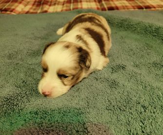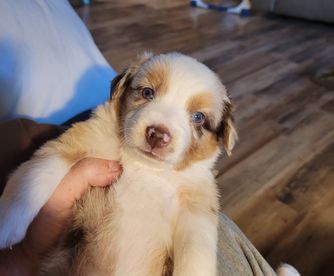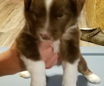Our puppies include blue merle and red merle. Colors will vary depending on the parent dogs.
