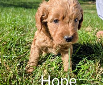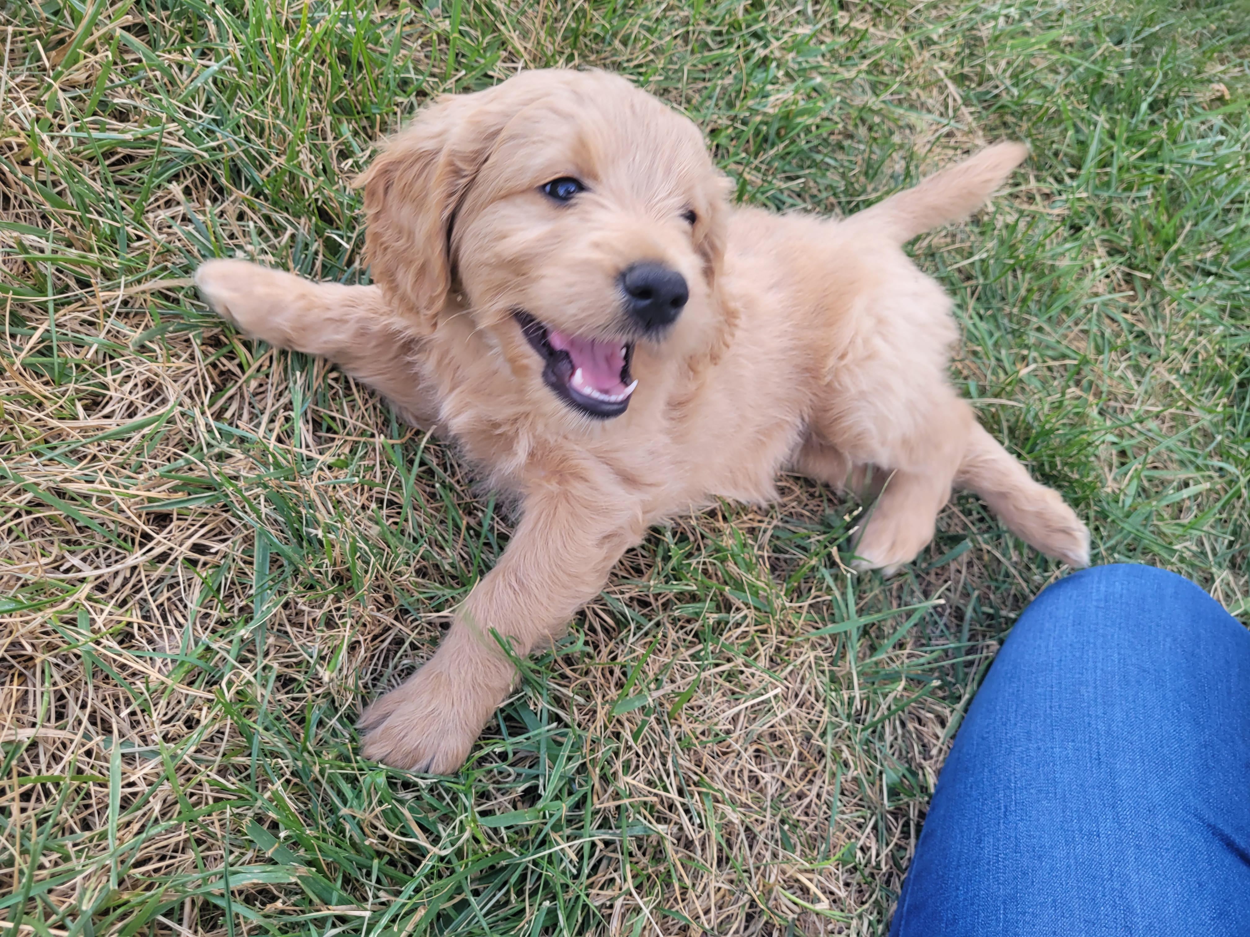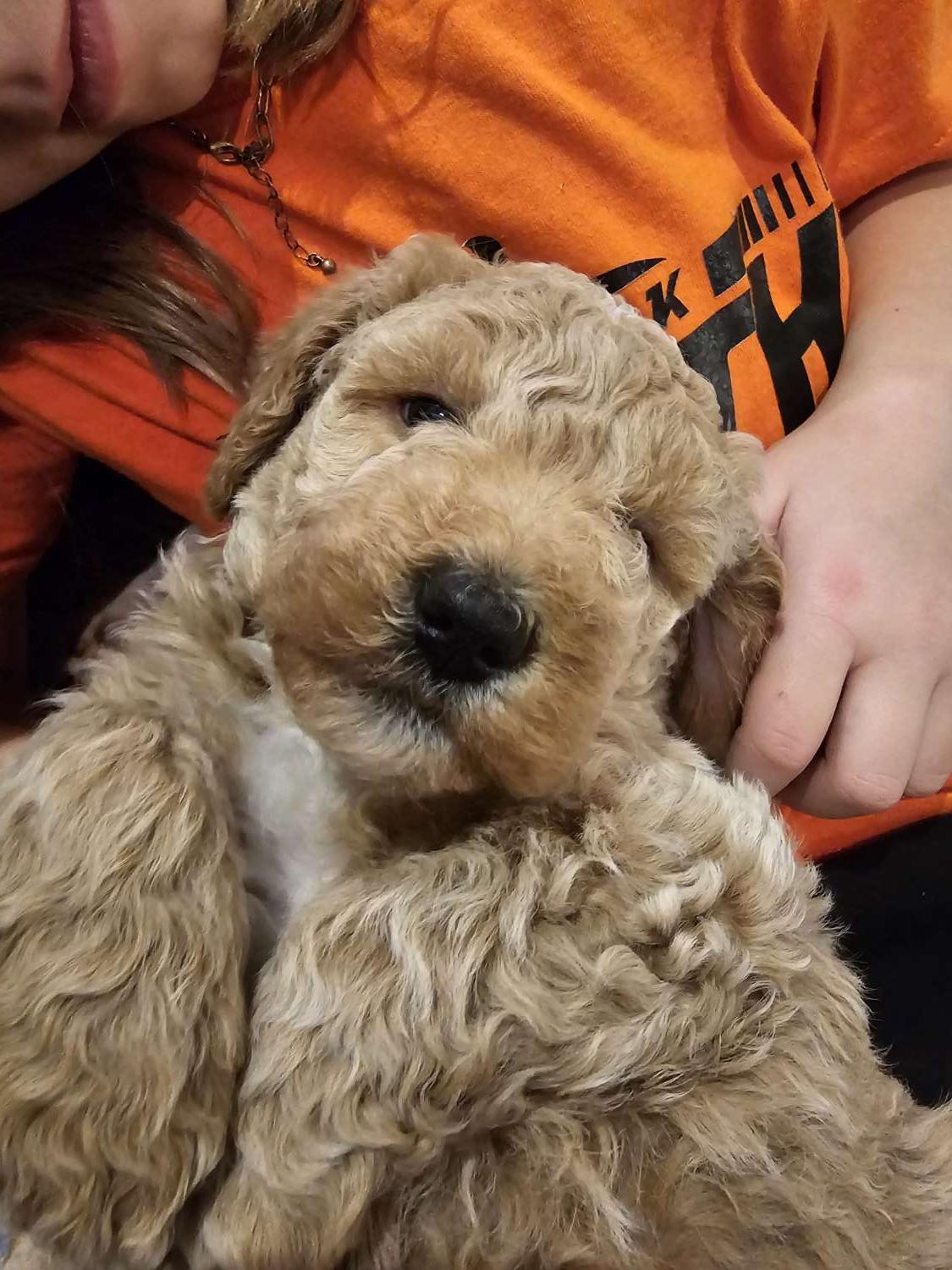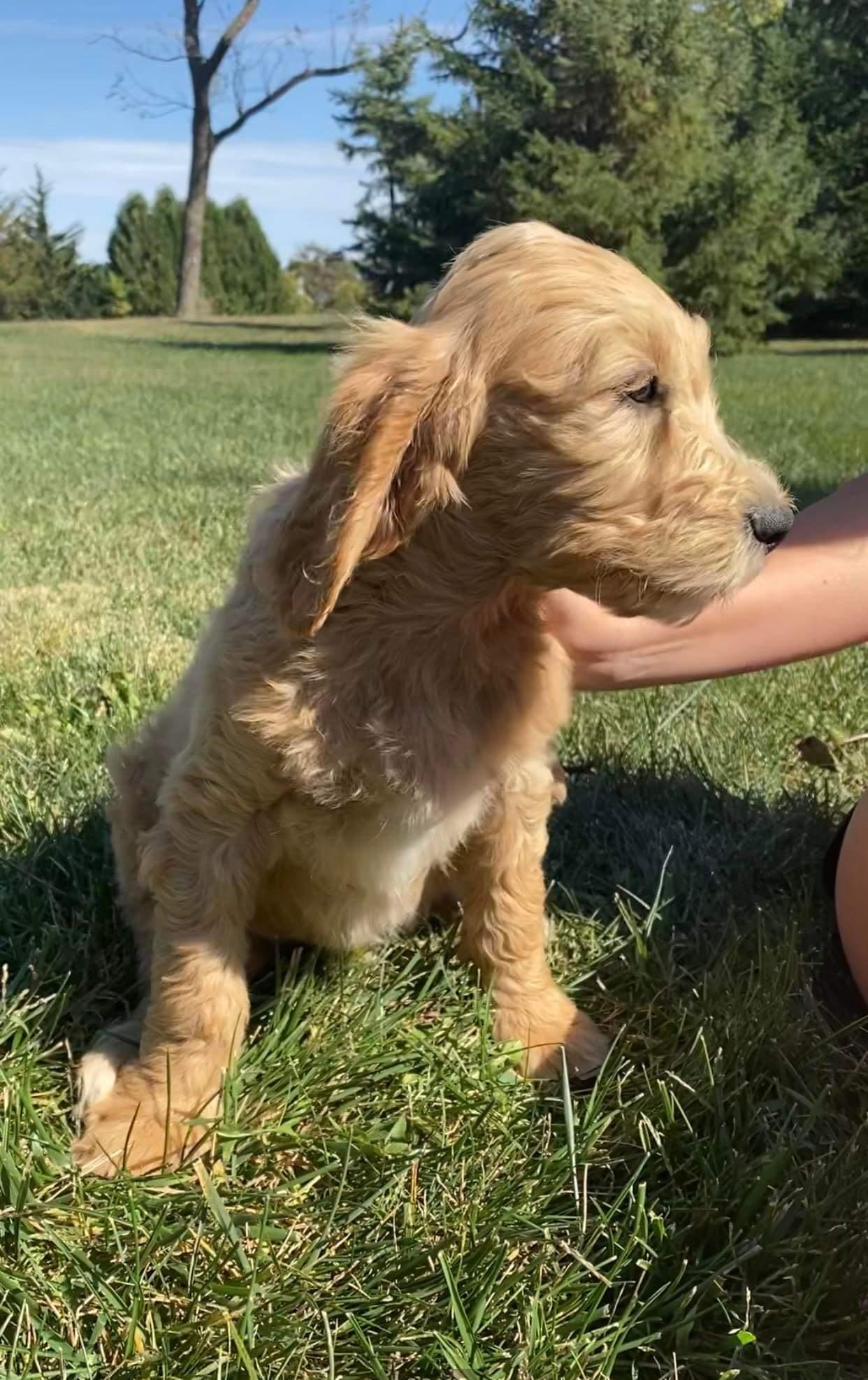 Eleanor is a gentle and affectionate 25 lb F1 Mini Goldendoodle who has quickly become one of the most loving moms in our program. With her soft, wavy coat and easygoing temperament, Eleanor is the perfect example of why Goldendoodles are so loved by families.
