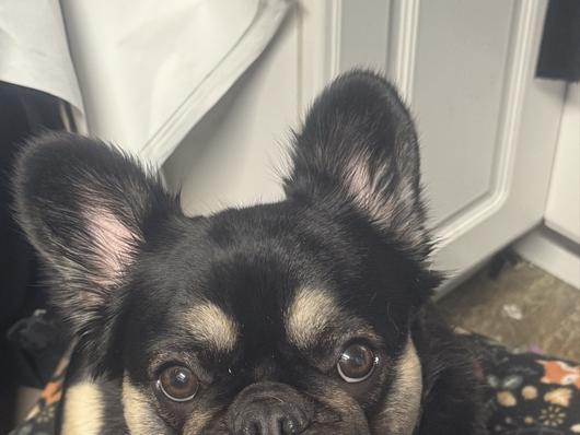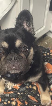 Muppet is a friendly, good natured Furry Frenchie. She is small and compact in size, topping out at 22 lbs, with a nice big head. Being a visual furry, her fur is super soft and sheds much less than a regular Frenchie. She’s a very intelligent dog that loves to cuddle and gets along great with other dogs and cats too.