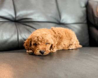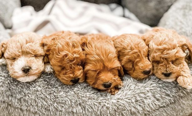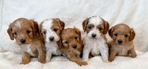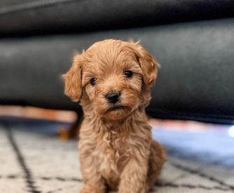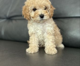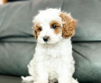 Our Cavapoo puppies include red and blenheim. Goldendoodle puppies include apricot and red. Colors will vary depending on the parent dogs.