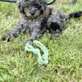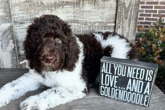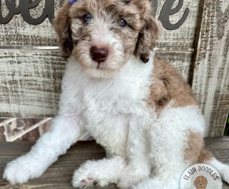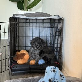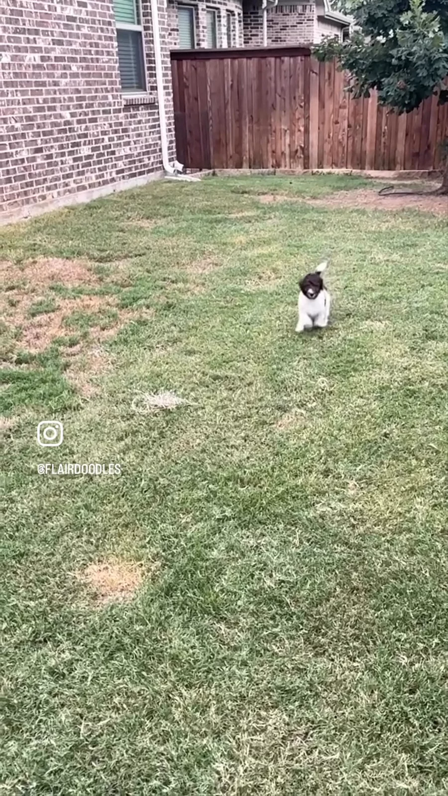 Flair Doodles really deserve a 10 star rating! After months of diligent search, we came across the profile online. Margaret takes time to chat with us and made recommendations based on our specific needs. We got a mini golden doodle from her and when I say he’s the sweetest boy ever, he really is! At only 9 weeks old, He goes potty outside and shows us little signals when he wants to go. He sleeps in his crate throughout the night too. You can really tell Margaret spends a lot of time on these babes. Our vet was impressed on how well behaved and healthy our little guy is. If you a looking for a doodle, look no further than Flair doodles. You will have no regrets. We found the perfect addition for our family.