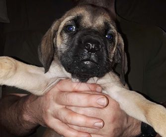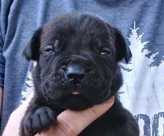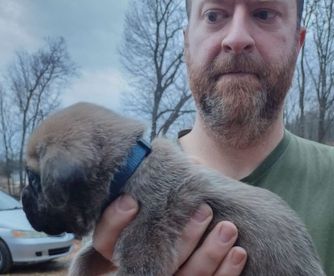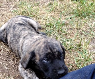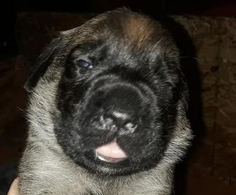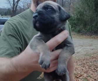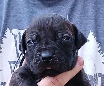 Our Boerboel puppies include black, brindle, and red. Mastiff puppies include fawn and brindle. Colors will vary depending on the parent dogs.