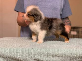 Our puppies include red tri-color, black tri, red merle, and blue merle. Colors will vary depending on the parent dogs.