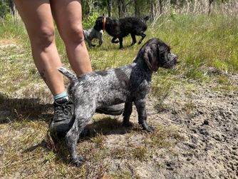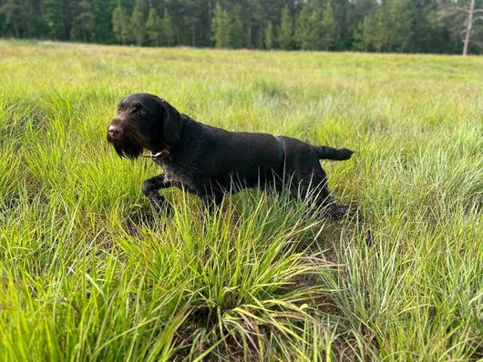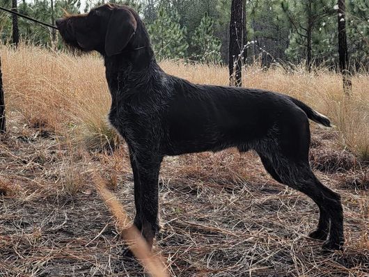 I'm Gabriella R., the breeder behind Fleetwood German Wirehaired Pointers located in Rockingham, NC. Our dogs are AKC and NAVHDA registered. We regularly participate in hunt tests, conformation, and other dog sports. When we aren't hunting my dogs are curled up on the couch sleeping. My dogs are breed to be a family companion as well as a hunters reliable partner.
