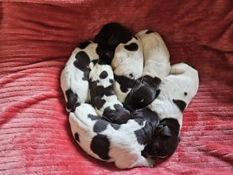 Our puppies include liver and white and liver. Colors will vary depending on the parent dogs.
