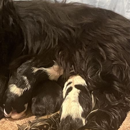 Our puppies include buff and white, black and white, brown, and black. Colors will vary depending on the parent dogs.