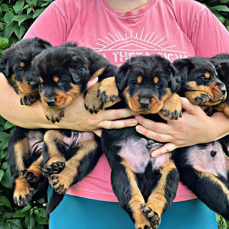 Our puppies include harlequin and black and rust. Colors will vary depending on the parent dogs.