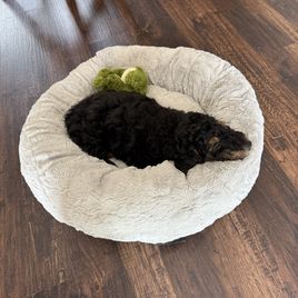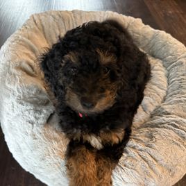 Our sweet baby Oakley, a mini Bernedoodle, is just about perfect! Jan and her family welcomed me into their home day one to meet our prospective puppy. This family loves their babies and it is so sweet to see. The puppies are kept inside the house with access to a doggie door and outside area. They have plenty of room to move and grow inside. Tons of information is given with your new puppy to aid in training and proper health. Oakley (Louisa) is just beautiful and so fun to watch play with our older puppy. We are in love and so happy to have her as a family member. Thank you Jan and Fleury Farm Doodles for our little blessing. 🐶
