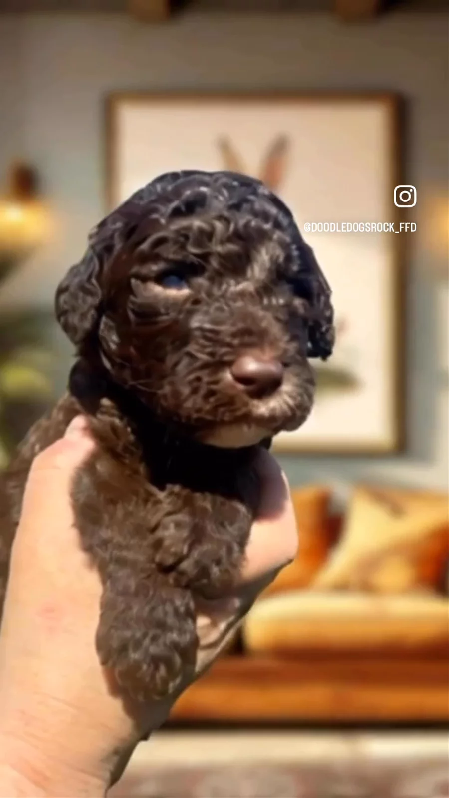 And then there were three… three precious Whoodle boys — Deacon, Pax, & Shep! Meet Deacon — our very first chocolate F1b Whoodle! Deacon is such a friendly, happy boy and was the first one out the doggie door, always ready to explore and be part of the fun. He is an incredibly loving little boy with the sweetest, most relaxed temperament. You can turn him right onto his back for belly rubs and he simply melts into your arms. He has a very gentle spirit and already loves spending time with people, making him a wonderful fit for a family looking for a calm, affectionate companion.
