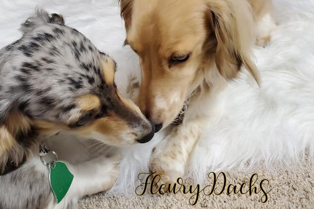I can’t recommend Kristen and her crew of helpers enough, they kept us updated on everything going on with the pups until the moment we could take our little one home. I could tell just how much these dogs mean to them, and she was so willing to help in any way she could to get our little Cashew settled into her forever home. I would recommend FleuryDachs to anyone looking for their tiny little forever bestie!