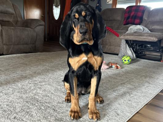 Raven is a female Bloodhound. Carefully selected as a great representative of her breed, Kolbie decided to make her part of their program. Kolbie has passed Good Dog’s screening process, which involved a review of their breeding practices, environment, and the mental and physical health of their dogs.
